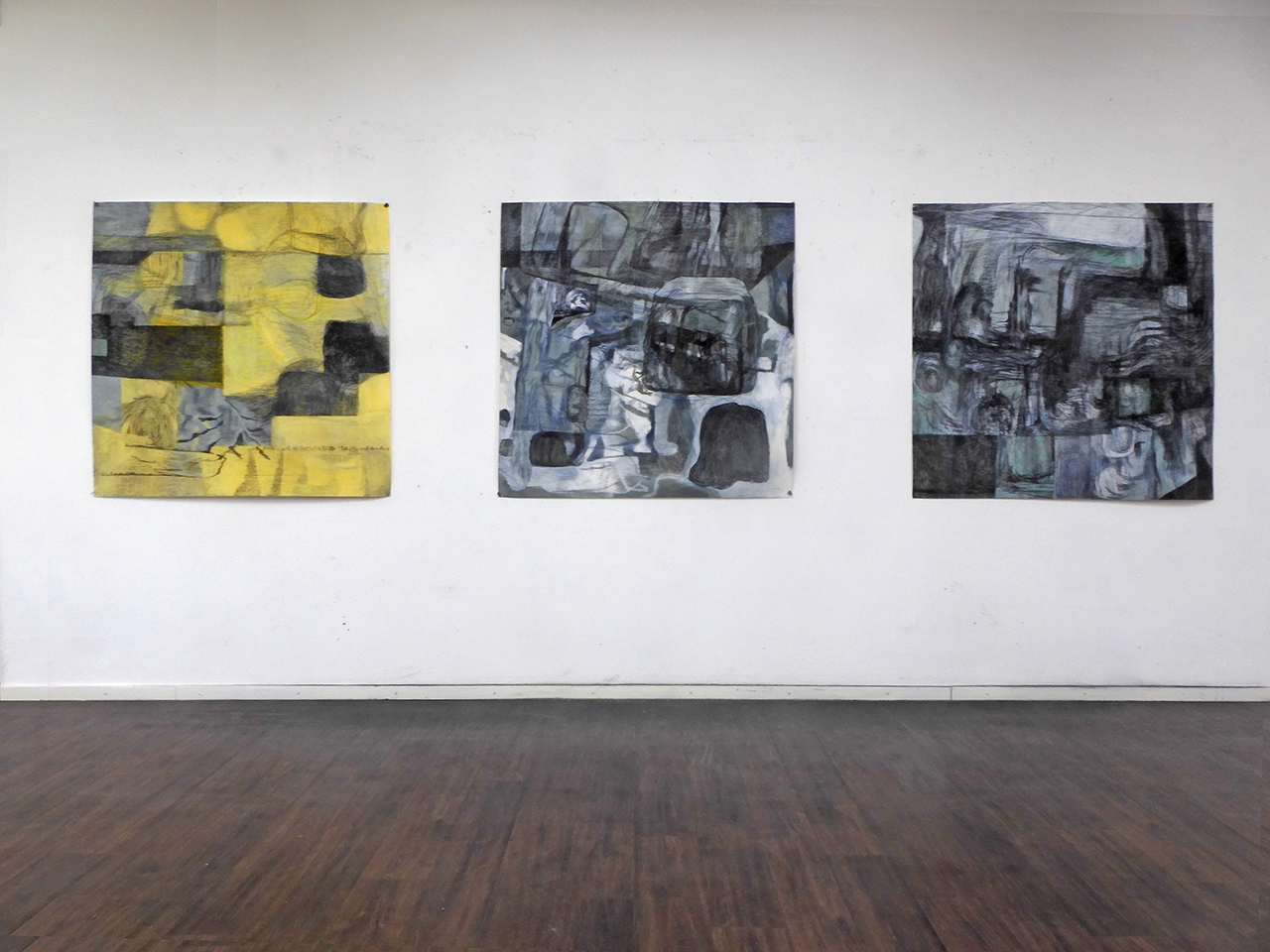 2025 Untitled / Tube no. 4, no.3 and no. 2, 117 x 117 cm, pastel - contepencil on paper